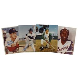 Four color glossy and satin-finish 8 x 10 photos, each signed in blue felt tip by the respective Hall of Famer pictured. Signers are: Hank Aaron, Stan