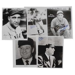 Five glossy 8 x 10 photos, each signed by the respective Baseball Hall of Famer: George Kelly, Lloyd Waner, Enos Slaughter, Al Barlick, and Jocko Conl