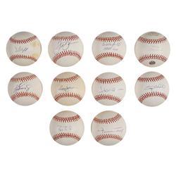 Ten official Rawlings baseballs, each signed on the sweet spot in ballpoint by a member of the 500 Home Run Club. Signers are: Barry Bonds (2), Hank A