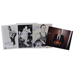 Four photos, three 8 x 10 and one 10 x 8, each signed in felt tip by the respective Basketball Hall of Famer pictured. Included are: Paul Arizin, Les
