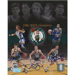 Color glossy 8 x 10 composite photo of the 1986 Championship team, signed in blue felt tip by Larry Bird, Kevin McHale, Robert Parish, Bill Walton, an