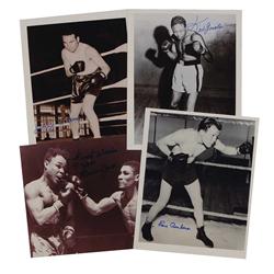 Four glossy signed boxing photos each signed in blue felt tip, including three 8 x 10 and one 10 x 8. Signers include: Beau Jack, Kid Gavilan, Lou Amb