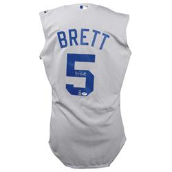 Official Majestic replica Kansas City Royals sleeveless baseball jersey, with sewn on letters and numbers, signed in silver ink on the number on the b