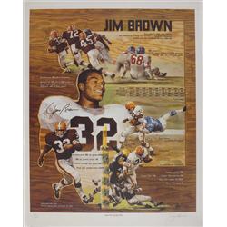 Color limited edition 26.5 x 33 composite print honoring Brown’s career, numbered #1797/3200, signed in brown felt tip. Also signed in pencil by