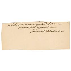 Ink signature, “With kind regard I am dear sir yours—James Monroe,” on an off-white 6 x 2.5 slip, clipped from the closing of a lett