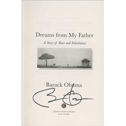 Signed book: Dreams from My Father. First edition. NY: Crown Publishers, 2004. Hardcover with dustjacket, 6.5 x 9.5, 442 pages. Signed on the title pa