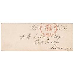 Hand-addressed and free franked envelope, 5.5 x 2.25, addressed to “J. D. Colony Esq., Post Master, Keene, NH,” and franked at the top, ...