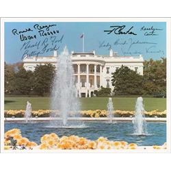 Color 10 x 8 photo of the White House, signed in black felt tip and ink by Ronald and Nancy Reagan, Gerald and Betty Ford, J and Rosalynn Carter