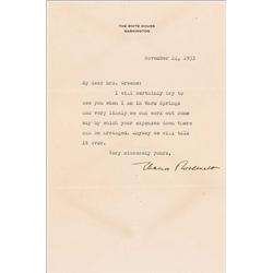 TLS, one page, 6.25 x 9.25, White House letterhead, November 24, 1933. Letter to Mrs. Greene. In full: “I will certainly try to see you when I a