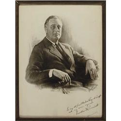 Vintage matte-finish 10.5 x 14 photo of an artist’s sketch of Roosevelt, signed and inscribed in fountain pen “For my old friend Herbert B