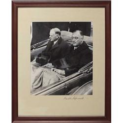 Wonderful vintage matte-finish 11 x 13 photo of Roosevelt and Herbert Hoover riding in the back of a convertible, undoubtedly on the presidential inau