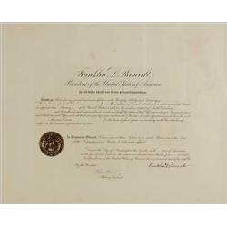 Partly-printed DS as president, one page, 20 x 16, January 26, 1934. President Roosevelt appoints Marcus Erwin to the position of “Attorney of t