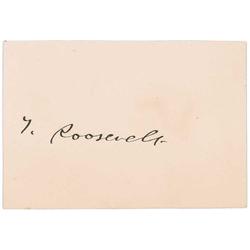 Ink signature, “T. Roosevelt,” on an off-white 3.25 x 2.5 card. In fine condition, with a bit of mild toning and rippling due to mounting