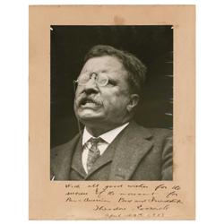 Vintage glossy 8 x 10 photo of Roosevelt with an emphatic grimace on his face, affixed to its original 10.75 x 14 mount, signed and inscribed as presi