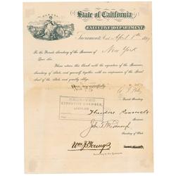 Unusual partly-printed DS, one page, 8.25 x 10.75, April 8, 1899. An official request from the government of California for the signatures of the Gove