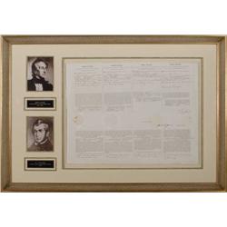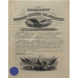 Partly printed DS as president, signed “J. Tyler,” one page, 20.75 x 16, October 27, 1843. A four-language ship’s papers issued to A