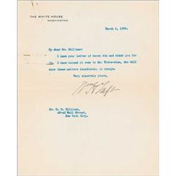 TLS as president signed “Wm. H. Taft,” one page, 7 x 9, White House letterhead, March 8, 1909. Letter to R. D. Stillman. In full: “I