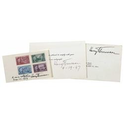 Two items: Ink signature, “A nice collection, Harry S. Truman, June 26, 1959,” at the bottom of an off-white 5 x 3 card, with four Frankli