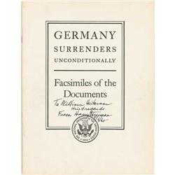 Booklet entitled “Germany Surrenders Unconditionally—Facsimiles of the Documents,” 8 x 10.25, 41 pages, issued by the National Archi