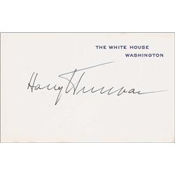 Uncommon signed White House card, signed in black ink, “Harry S. Truman.” In fine condition. A scarcely seen format. Pre-certified John Re