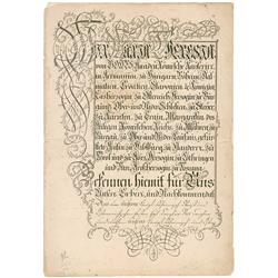 Empress of Austria (1717–1780) and mother of Marie Antoinette. DS, in German, two pages both sides, 10.5 x 15, January 1, 1762. Interesting docu