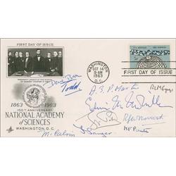 FDC with a cachet honoring the 100th anniversary of the National Academy of Sciences, signed on the front in various inks by ten Nobel Prize recipient