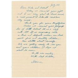 Unsigned ALS written by Lee Harvey Oswald, but signed by his wife “Marina,” one page, lightly-lined, 5.75 x 8, July 28. Letter to Vada and