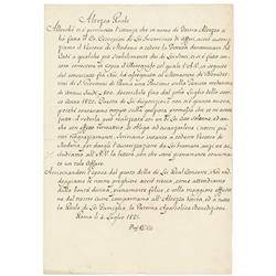 Born Count Barnaba Niccolò Maria Luigi Chiaramonti, Pope from 1800-1823. LS, in Italian, signed “Pius PP. VII,” one page, 8.75 x 12