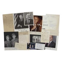 Collection of 12 items, consisting of letters, signatures, and signed photos from politicians. Signers are: George Bush (2), Walter Mondale, Hubert H.
