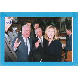 Color glossy 7 x 4.75 photo of Rabin engaged in conversation with Barbra Streisand standing next to him, signed in blue felt tip, “Y. Rabin.&a...