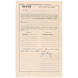 Notarized DS, one page, 8.5 x 14, February 21, 1956. Texas certificate for registration of names. In part: “The County of Dallas, State of Texas