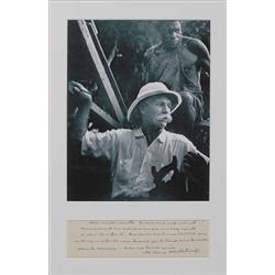 ALS in French, one page, 7.5 x 2, no date. Short untranslated letter to an unidentified woman. Matted with a photo of Schweitzer in Africa, to an over