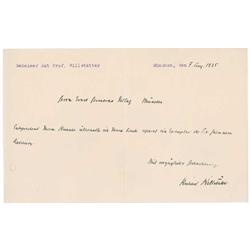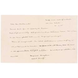 Missionary doctor, theologian, philosopher, organist, Bach expert, and winner of the Nobel Peace Prize (1875–1965). ALS in German, one page, 8.2