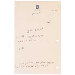 Second Prime Minister of Israel (1894–1965) who served from 1954–1955. ALS in Hebrew, signed “M. S.,” one page, 5.5 x 8.5, Sta