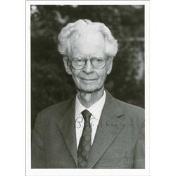 Psychologist and author who conducted pioneering work in experimental psychology. Glossy 5 x 7 photo of an elderly Skinner posing outdoors, signed in