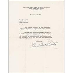 Eighth president of The Church of Jesus Christ of Latter-Day Saints. TLS signed “Geo. Albert Smith,” one page, 8.5 x 11, Church of Jesus C