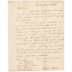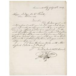 LS signed “Danl. Webster,” one page, 7.75 x 9.75, October 27, 1924. Webster writes from Boston to the Phi Gamma Alpha Society of Hamilton