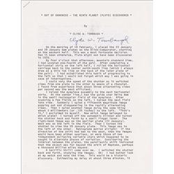 American astronomer (1906–1997) best known for discovering Pluto in 1930. Souvenir typescript, two pages, 8.5 x 11, from his book Pot of Darknes