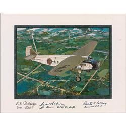 Color 8 x 6 print of a Ford Tri-Motor airplane, affixed to a 10 x 8 off-white mount, signed on the mount in black felt tip by Generals E. E. Partridge