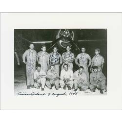 Glossy 10 x 8 photo of the crew of the Bockscar, signed in ballpoint and felt tip by crew members Charles Sweeney, Fred Olivi, Kermit Beahan, and Jim