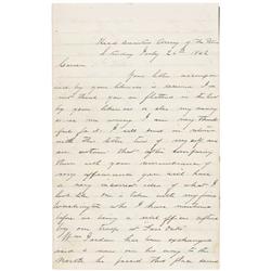 ALS signed “George,” three lightly-lined pages on two adjoining sheets, 5.5 x 8, July 26, 1862. Letter to his cousin written from the Head