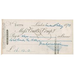 English novelist and the author of such classics as Oliver Twist, A Tale of Two Cities, and David Copperfield. Check, 7.5 x 3.75, filled out and signe