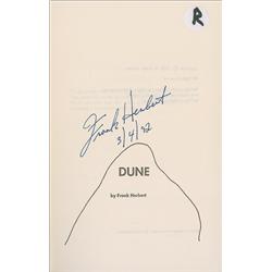Signed book: Dune. Book club edition. Philadelphia: Chilton Book Company, 1965. Hardcover with dustjacket, 6 x 8.5, 507 pages. Signed on the right sid