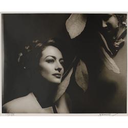 Striking oversized limited edition 24 x 20 silver gelatin close-up photo of Joan Crawford, #122/190, signed in the lower border in black ink, “Hurrell