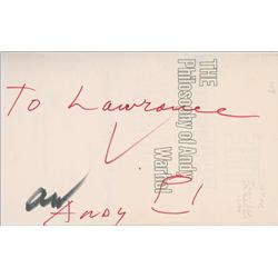 Signed book: The Philosophy of Andy Warhol (From A to B & Back Again). First edition, later printing. NY: Harcourt Brace Jovanovich, 1975. Hardc...