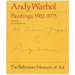 Program from Warhol’s 1975 exhibition at the Baltimore Museum of Art, 8.5 x 10, two pages, signed and inscribed on the front cover, “To Diane & ...