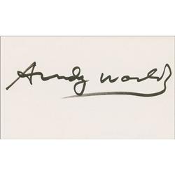 Perfect bold felt tip in-person signature, “Andy Warhol,” on an off-white 5 x 3 card. In very fine condition.