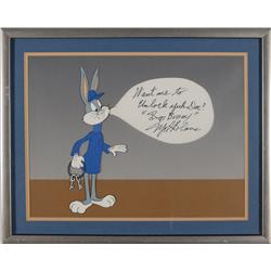 Felt tip signature, “Want me to unlock yuh Doc? ‘Bugs Bunny’ Mel Blanc,” on an off-white card, which has been matted into an 11.5 x 9 Bugs Bunny anima