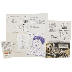 Seven original ink and felt tip sketches on sheets and cards, ranging in size from 5 x 7.75 up to 12 x 9, each signed by the respective artist, with s