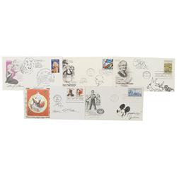 Five different FDCs and commemorative covers, each signed by a different cartoonist, each adding a sketch of their character. Signers are: Hank Ketcha